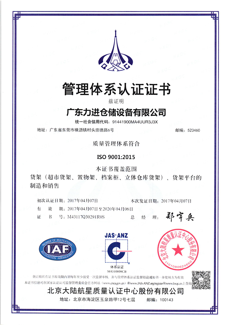 • Dgongguan LIJIN dtorage equipment co.,Ltd. (now renamed Guangdong force storage equipment Co., Ltd.) was founded in 2008 07 months, the registered capital of 3 million yuan. After 8 years of development, in October 2016 changed its name to Guangdong Lijin storage equipment Co. Ltd., the registered capital increased to 16 million 800 thousand yuan; business scope: warehouse system and equipment, shelves, storage equipment, steel structure and metal products, plastic products, transportation equipment, tool cabinets, table, shelf, filing cabinets, mobile cabinet forklift, forklift accessories, design, manufacturing, sales, import and export of goods and technology.