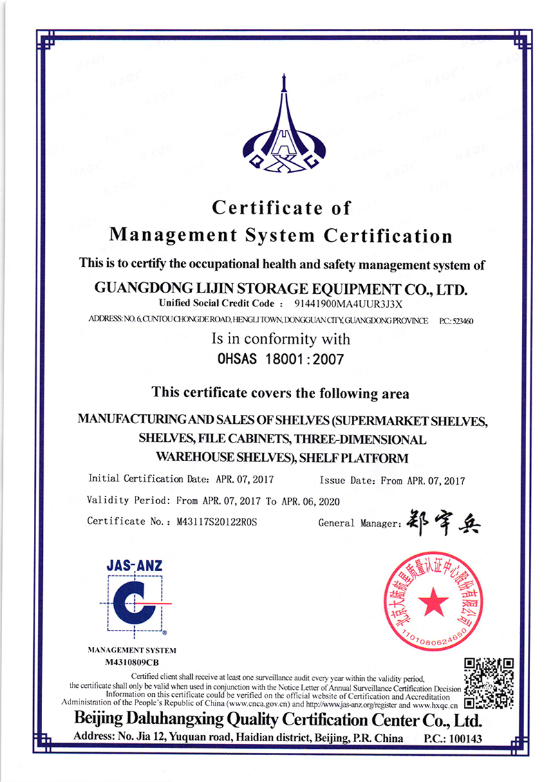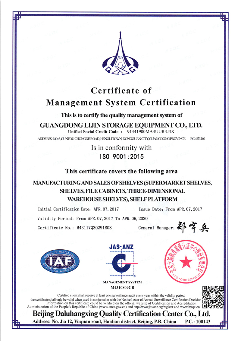 • Dgongguan LIJIN dtorage equipment co.,Ltd. is specialized in warehousing shelves and storage equipment, research and development, production, sales, installation in one of the integrated enterprise. Company strength, reputation, with advanced production equipment, cutting-edge production technology and perfect after-sales service, to meet customer demand for different design. Our main products are: light shelves, shelves, heavy shelves, shelf platform, loft style shelves, cantilevered shelves, shelf, shelves, mobile cabinets, fluent (drawer type) mold frame, 4S rack, storage cage, workbench, tool cabinets, tool cart, parts cabinet, logistics trolley and the surrounding equipment. Force has nearly thousands of Chinese and foreign enterprises, including a large number of the world's top 500 enterprises, to provide first-class quality goods and related services of domestic listed companies and the industry leading enterprises